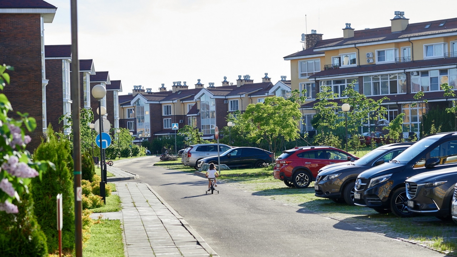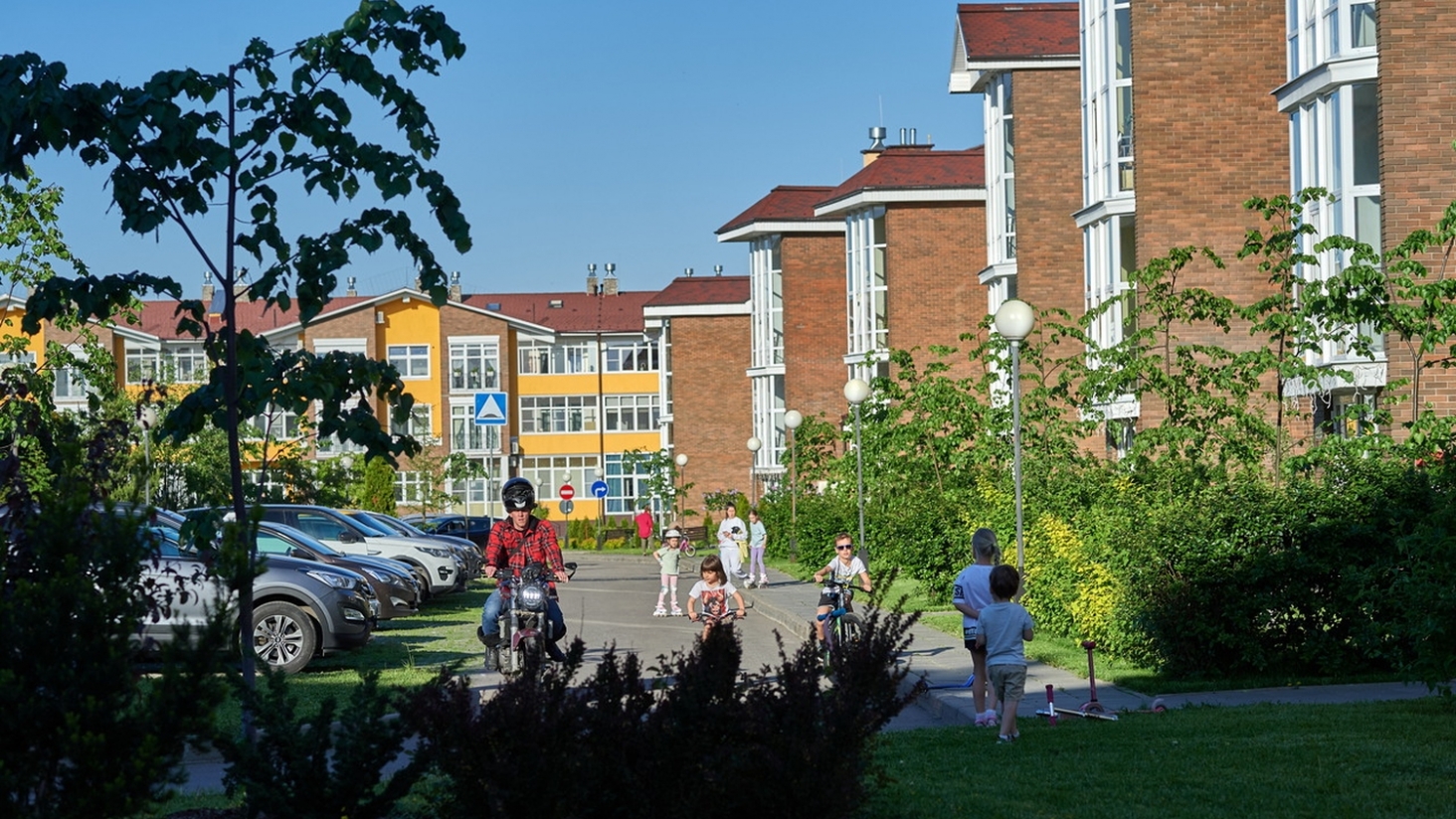 Подъезды жилых домов выходят на внутренние улочки. В центре каждого квартала находятся озелененный двор с газонами, детскими площадками и зонами отдыха.